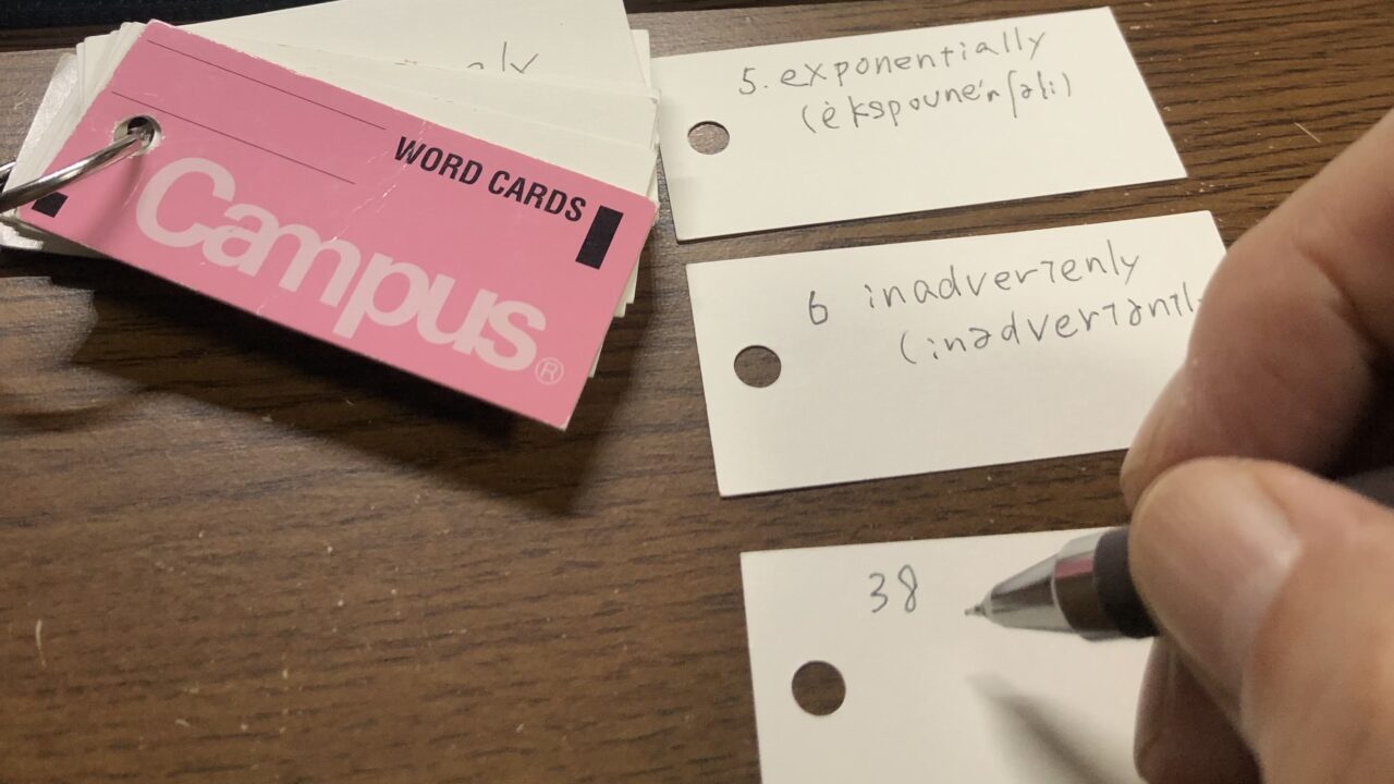 1. カード型単語帳を準備して、厄介な単語を表面に書く